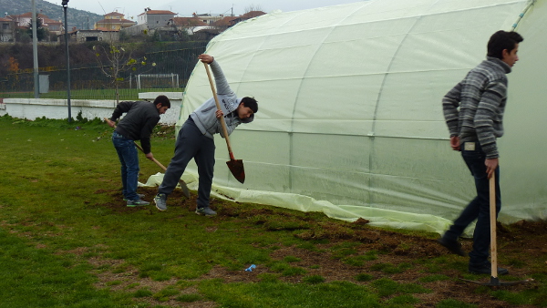 Στην ολοκλήρωση του θερμοκηπίου βοήθησαν και οι μαθητές του τμήματος.